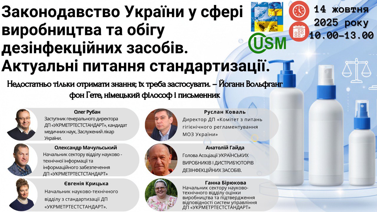 Навчання Законодавство України у сфері виробництва та обігу дезінфекційних засобів. Актуальні питання стандартизації. ШАНОВНІ КОЛЕГИ ! ДП «УКРМЕТРТЕСТСТАНДАРТ» проводить вебінар на тему: Законодавство України у сфері виробництва та обігу дезінфекційних засобів. Актуальні питання стандартизації. Дата: 14 жовтня 2025 рокуЧас: 10.00-13.00Формат: онлайн на платформі ZOOM Read more »