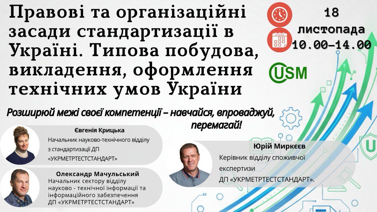 Навчання Правові та організаційні засади стандартизації в Україні. Типова побудова, викладення, оформлення технічних умов України ЗАПРОШЕННЯ Державне підприємство «УКРМЕТРТЕСТСТАНДАРТ» проводить підвищення технічної компетентності та ділових якостей фахівців у сфері технічного регулювання за напрямком «Стандартизація». ТЕМА: «Правові та організаційні засади стандартизації в Україні. Типова побудова, викладення, оформлення технічних умов України» Дата: 23 вересня 2025 року Час: 10.00-13.30Формат: онлайн на платформі ZOOM Read more »